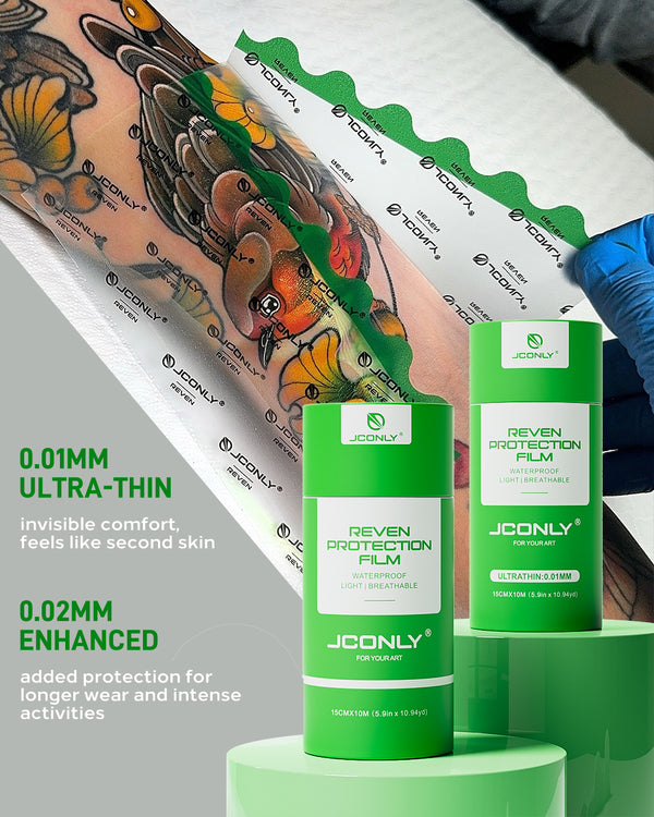 ✱ Prevents Discoloration and Scars – Safeguards tattoo color from fading and reduces scabbing, ensuring minimal skin lesions and preserving the tattoo's vibrancy